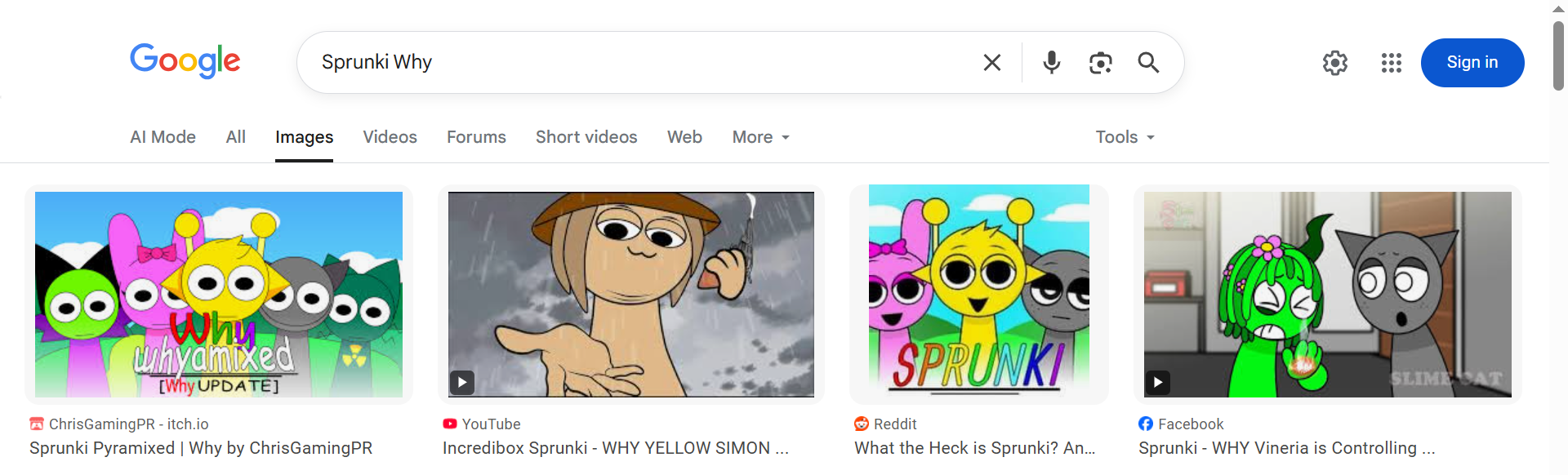 Quite literally, his version is THE FIRST FUCKING RESULT WHEN LOOKING UP SOMETHING LIKE "Sprunki Why"!